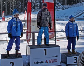 Auf der K15-Schanze musste Siri Wigger am Samstag noch den männlichen Kollegen den Vortritt auf dem Podest lassen, sie holte sich den dritten Platz. Am Sonntag sicherte sie sich dann mit einem herrlichen zweiten Sprung auf 15 Meter den Sieg in der Kategorie U10. Auf der K30-Schanze sprang Dominik Peter am Sonntag, nach dem er sich am Samstag den zweiten Platz gesichert hatte, mit 29.5 Meter zweimal die Bestweite und durfte sich über den Sieg in der Kategorie U12 freuen. In der gleichen Kategorie erreichte Elija Schelbert an beiden Tagen, die zwei Wertungssprünge zusammengezählt, mit 49.5 Meter exakt die gleiche Weite. Am Samstag reichte ihm dies für den dritten, am Sonntag für den 6. Rang. Auf der K70-Schanze gelang Lars Kindlimann genau das gleiche Kunststück wie Dominik Peter, einfach in umgekehrter Reihenfolge. Am Samstag sicherte er sich den Sieg in der Kategorie U12 und am Sonntag musste er einem Kontrahenten den Vortritt lassen, wobei ihm zum Schluss magere 0.6 Punkte oder umgerechnet 27 cm zum wiederholten Sieg fehlten.